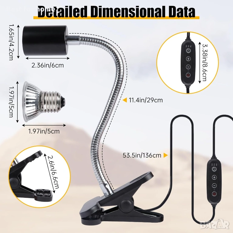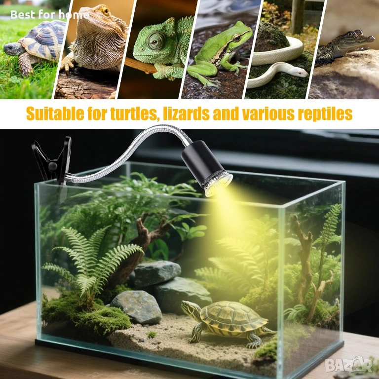【Широко приложение】 Тази лампа за влечуги е подходяща за повечето домашни любимци от рода на влечугите, като брадат дракон, гущери, гекони, змии и др. Тази лампа за костенурки използва стандартен цокъл E26 и е подходяща и за повечето крушки за отопление.