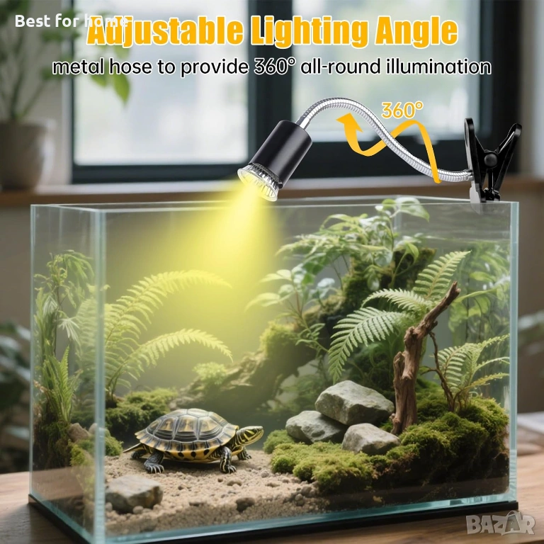 【Гъвкав и удобен дизайн】 Тази лампа за костенурки с двойна глава и гъша шия с дължина 29 см, която може да се върти на 360°, може гъвкаво да регулира ъгъла на лампата, за да гарантира, че всяко влечуго ще се чувства топло. Щипката има опъване от 6,6 см, което я прави подходяща за повечето размери аквариуми за влечуги.