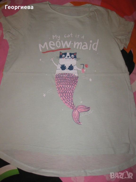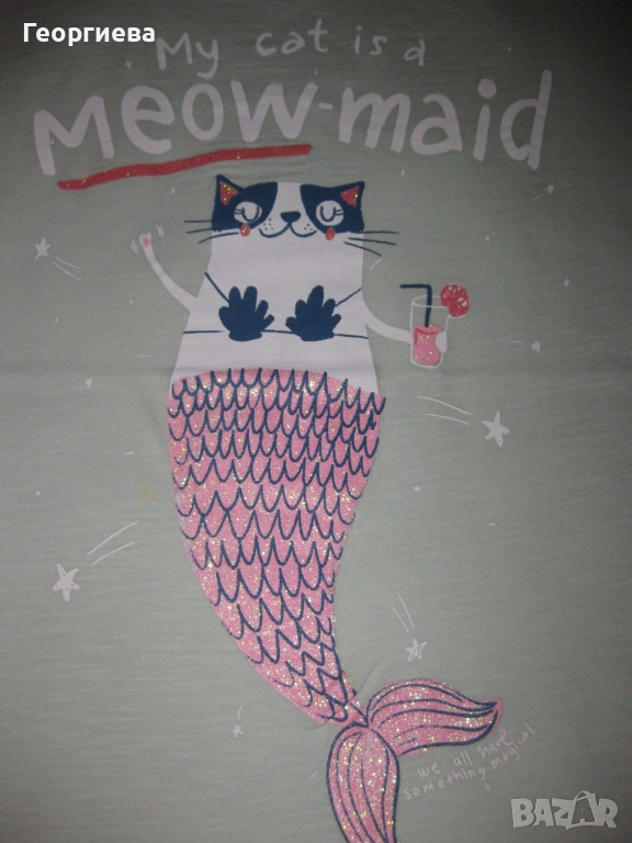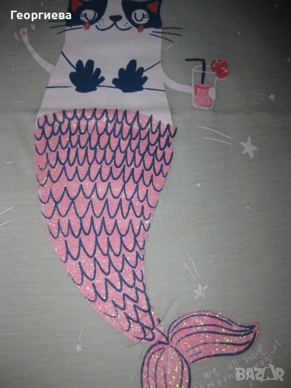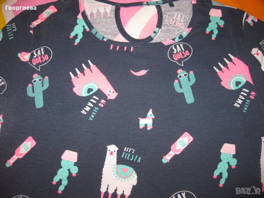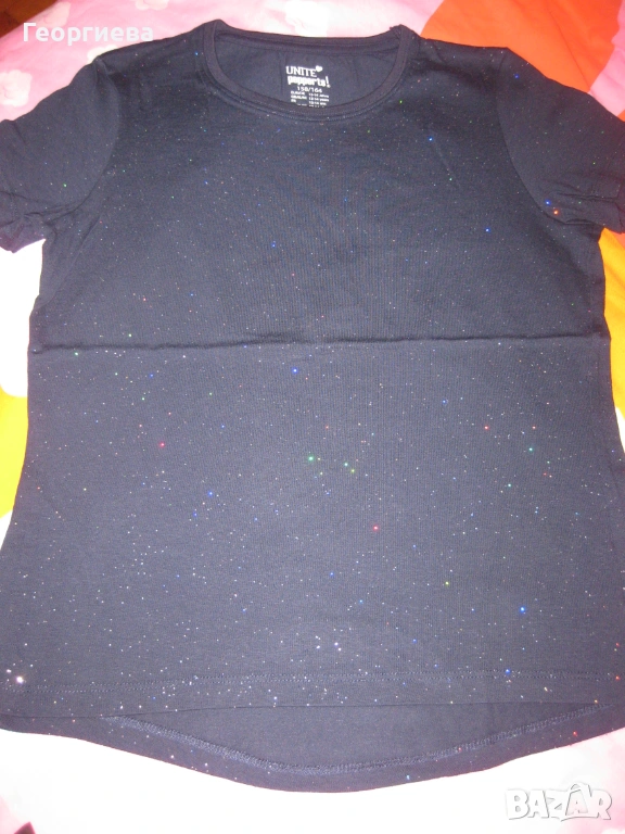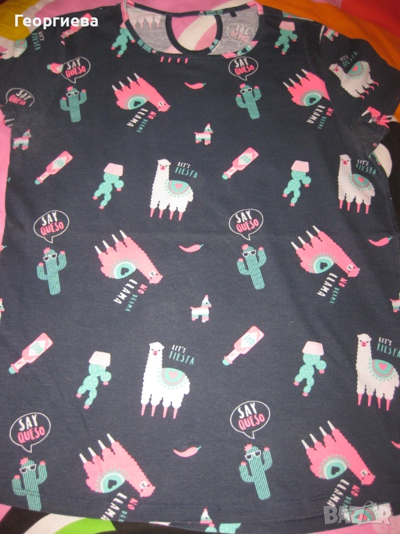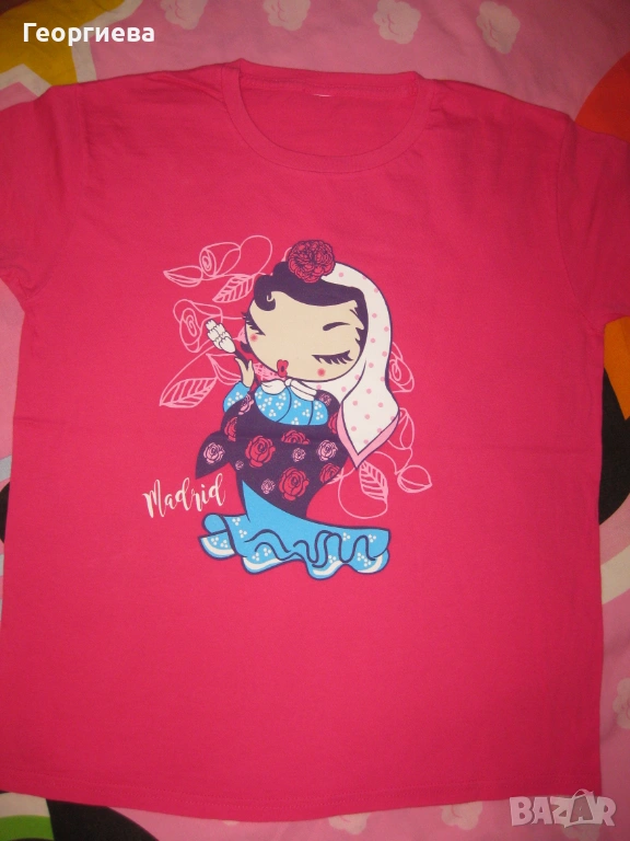 Лотчето се състои от 6 блузки, клинче 7/8 – ми и късо панталонче. Клинчето е на Zara, ново само изпрано. Панталончето също е ново. И двете дрешки са в хубав, наситен тъмносин цвят, който не успях да хвана със снимките. Двете тъмносини блузки не съм сигурна дали са носени, без забележки. Бялата, резидавата и блузката с ламата също са на Zara, купувани от Виена. Без забележки, с минимални следи от пране и гладене. Розовата блузка е купувана от Мадрид, беше на непозната за мен марка. Без забележки. Дрешките изключително добре се комбинират като цветове и размери.