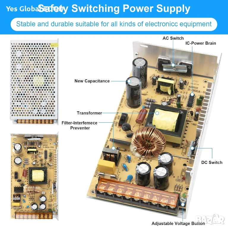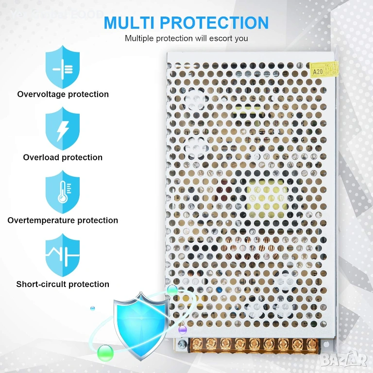 Импулсното захранване Kingwen 12V 20A е надеждно решение за захранване на LED ленти и други 12V устройства. Осигурява стабилно постоянно напрежение 12V с максимална мощност 240W. Поддържа широк входен диапазон AC 85–265V, което го прави подходящо за различни електроинсталации. Компактният дизайн и ефективното охлаждане гарантират сигурна и дълготрайна работа.