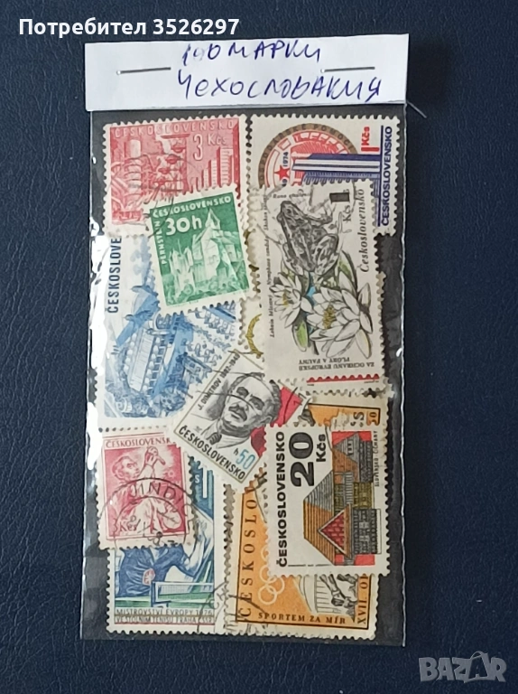 Колекция от 100 пощенски марки от бившата държава Чехословакия. Марките са с печати и са тези от снимките за 6 евро.