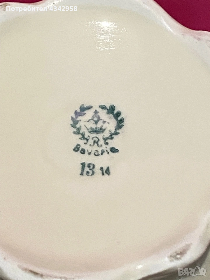 Клеймо на дъното: Bavaria, корона с буква „R“, използвано от баварски фабрики в началото на ХХ век (свързано с производството в района Waldershof /
