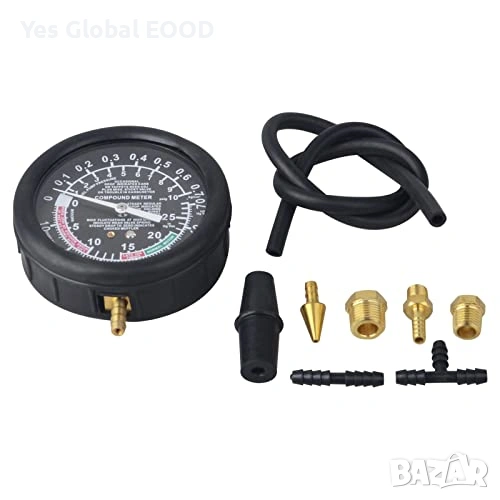 DAYUAN вакуум тестерът е предназначен за измерване на вакуум и налягане при карбуратори, клапани и бензинови помпи. Комплектът позволява бърза и точна диагностика на вакуумни системи в бензинови двигатели и е подходящ както за професионални сервизи, така и за домашна употреба. Уредът помага за откриване на проблеми с подаването на гориво, вакуумни течове и неправилна работа на клапаните.