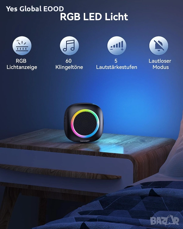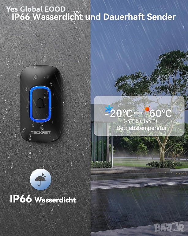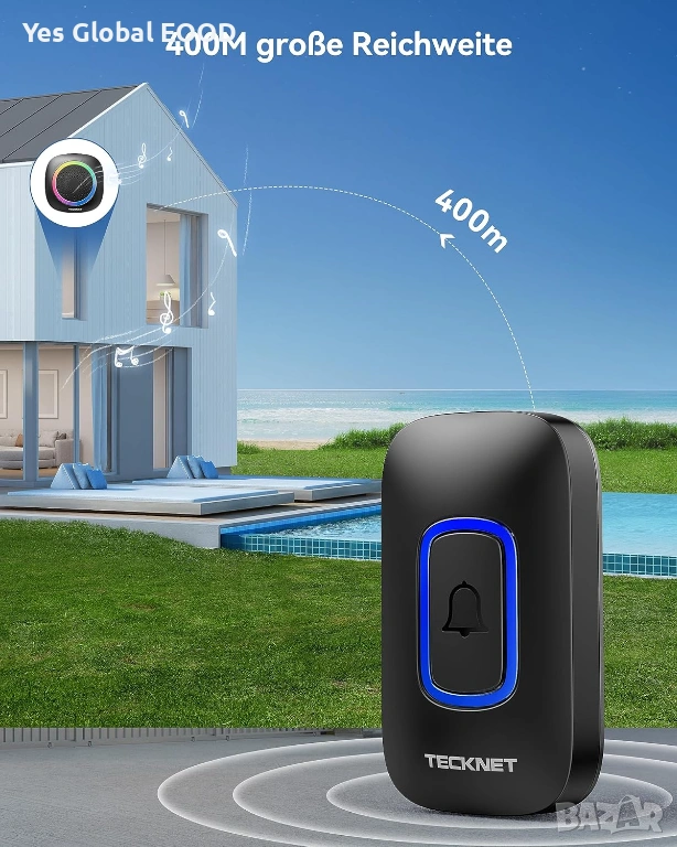TECKNET безжичен звънец IP66 400 м с RGB индикация