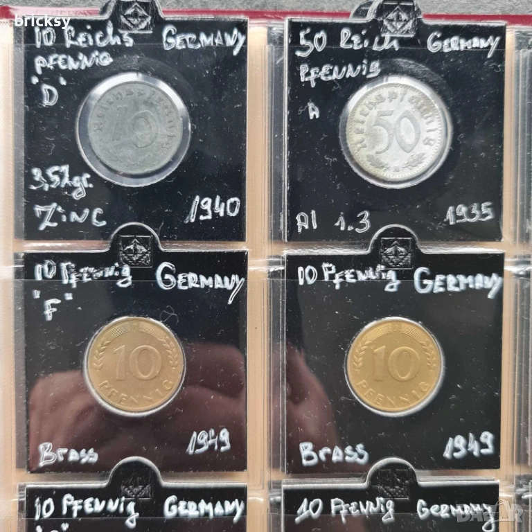1962 f, 10 пфенига - 1949 j, 1949 g, 1949 d, 1949 f; 50 пфенига - 1949 g , 1949 f, 1949 j , 1949 d,