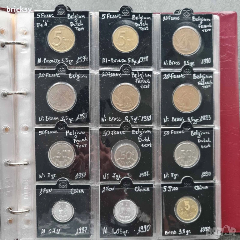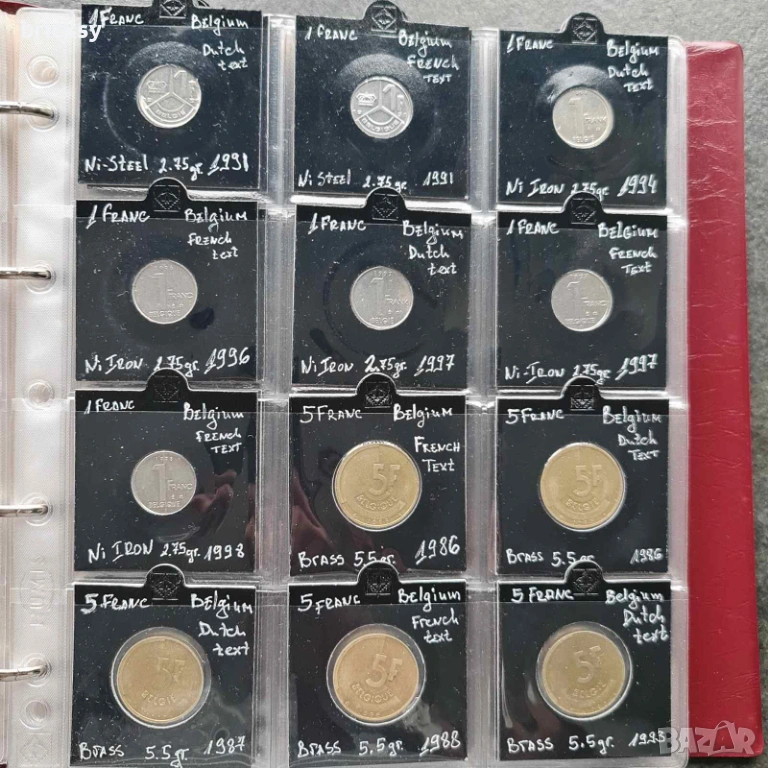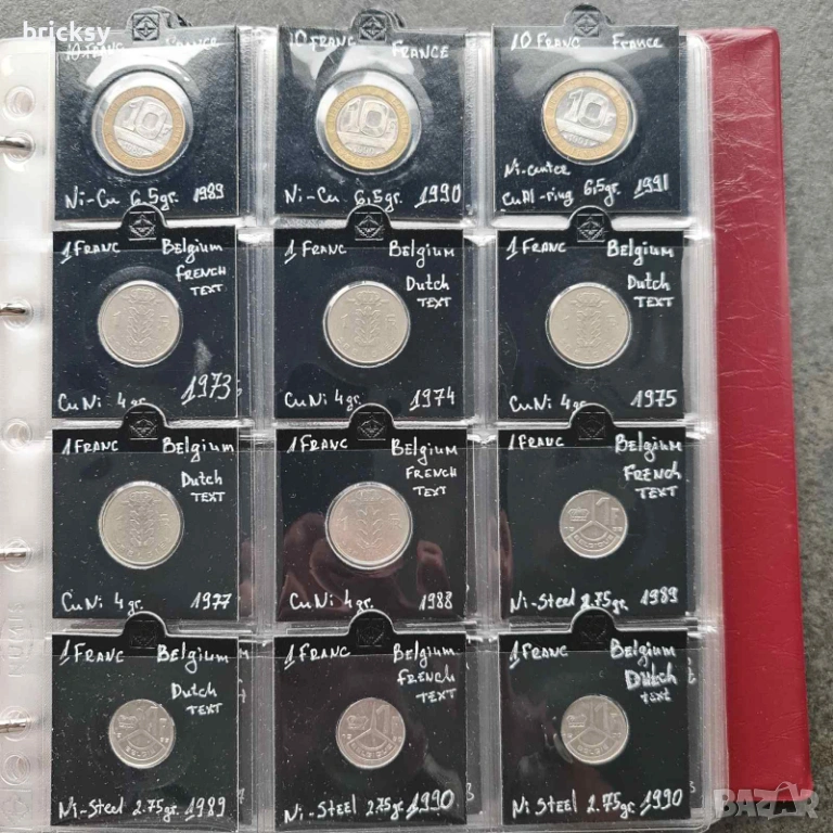стр. 5 Франция и Белгия; Франция 10 франка - 1989, 1990, 1991; Белгия двуезични надписи - d- Фламандски, f- Френски : 1 франк - 1973 f, 1974 d, 1975 d, 1977 d, 1988 f, 1989 f, 1989 d, 1990 f, 1990 d;