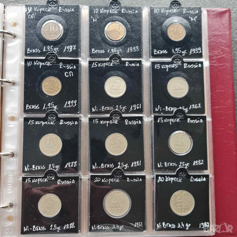 стр. 11 Русия/СССР М - монетен двор Москва, СП - Санкт Петербург: 10 копейки -1997 с.п., 1998 м, 1999 м, 1999 сп; 15 копейки 1961, 1962, 1978, 1981, 1982, 1988, 20 копейки - 1961, 1982,