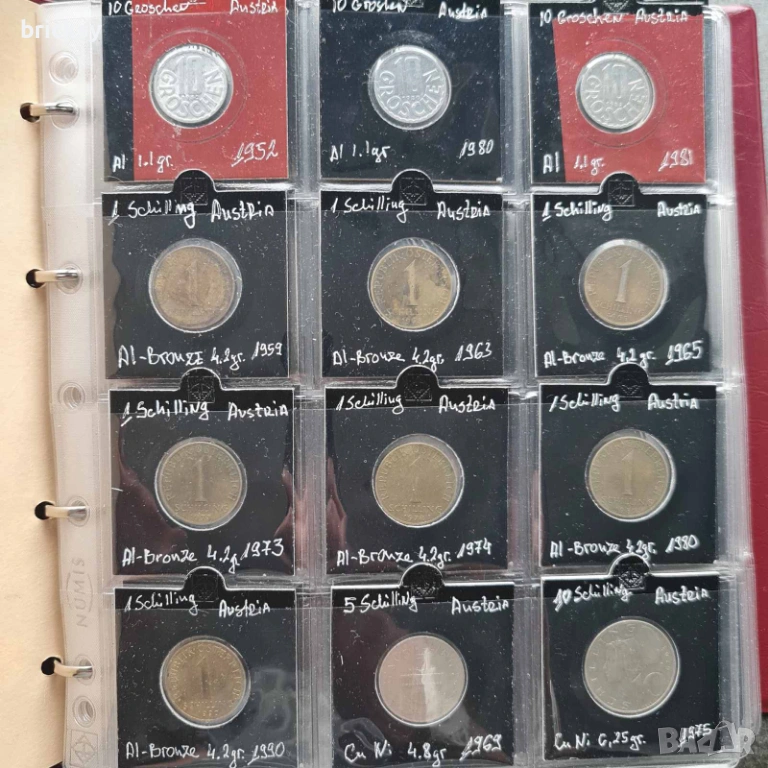 стр. 1 Австрия: 10 гроша - 1952, 1980, 1981; 1 шилинг - 1959, 1963, 1965,