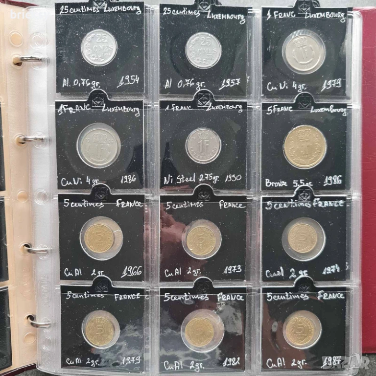 стр. 2 Люксембург и Франция: Люксембург: 25 сантима - 1954, 1957; 1 франк 1979, 1986, 1990; 5 франка - 1986;Франция: 5 сантима - 1966, 1973, 1974, 1979, 1982, 1987;