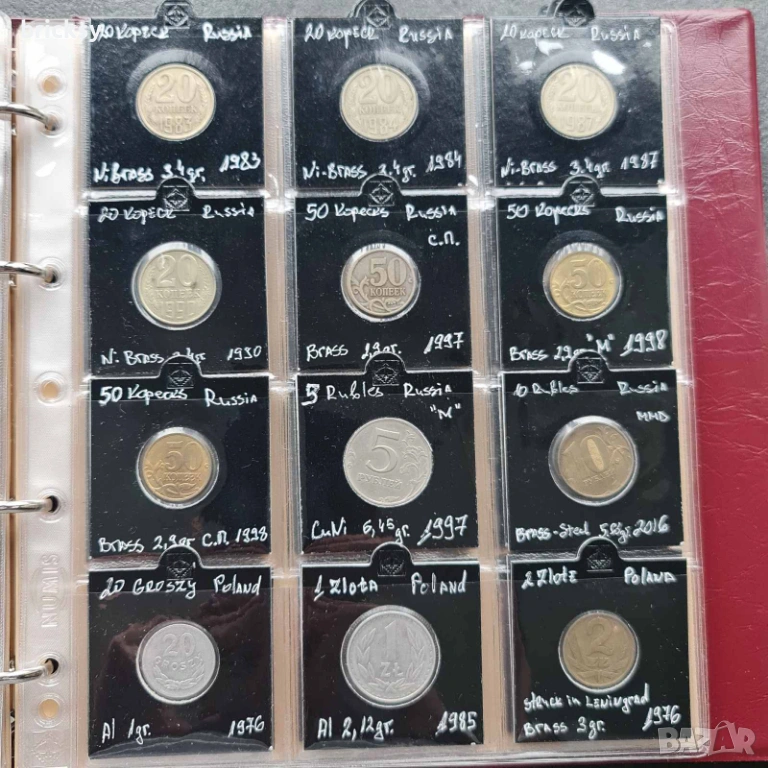 стр. 12 Русия/СССР М - монетен двор Москва, СП - Санкт Петербург и Полша: Русия/СССР 20 копейки - 1983, 1984, 1987, 1990, 50 копейки 1997 с.п, 1998 м, 1998 с.п. 5 рубли м 1997; 10 рубли ммд 2016; Полша - 20 гроши 1976, 1 злота 1985, 2 злоти 1976;