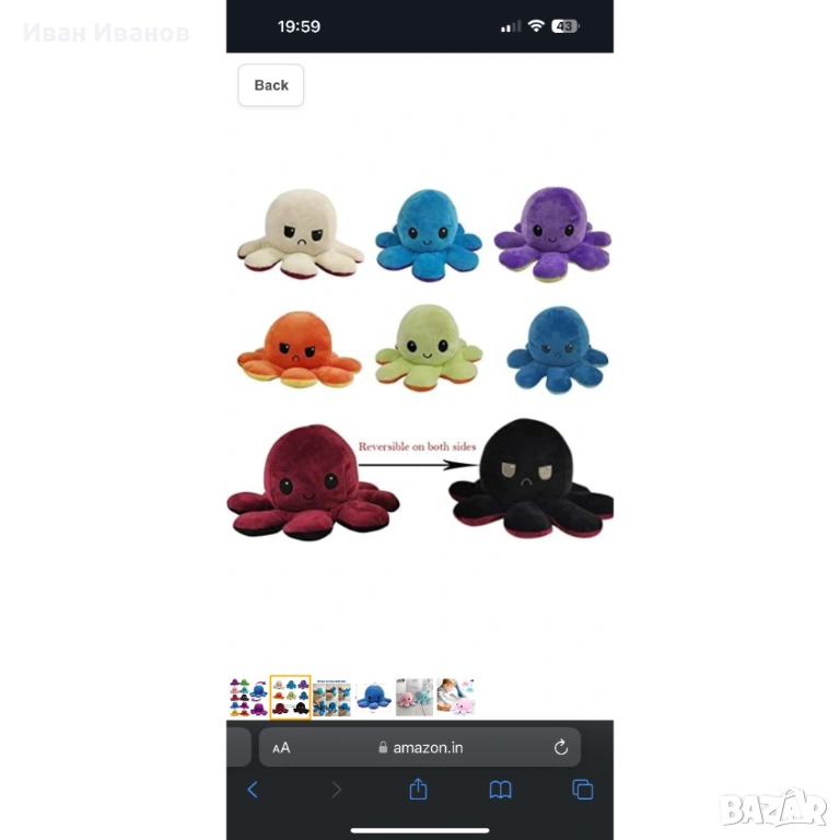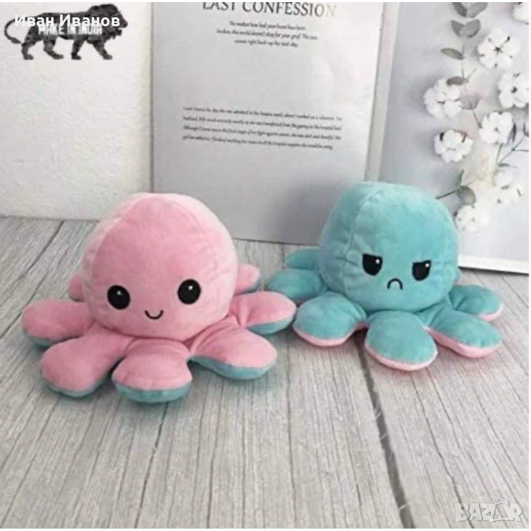 Умилителен плюшен подарък за деца и възрастни – играчка октоподче с две лица, в два цвята и с две настроения! Плюшената играчка октопод е сладък начин да покажеш на дете или на любим човек, че всяко нещо има две страни, а гледната точка към всяка от тях бързо и лесно се променя.