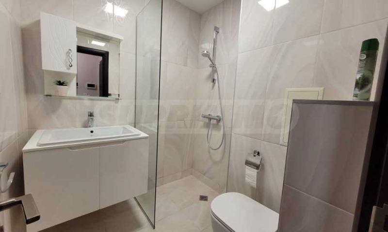 Спалнята е с двойно легло, нощни шкафчета, просторен гардероб с огледални врати и климатик. Допълнително предимство е наличието на отделно сервизно/перално помещение с пералня, бойлер и място за съхранение практично решение, което рядко се среща при двустайни имоти.
