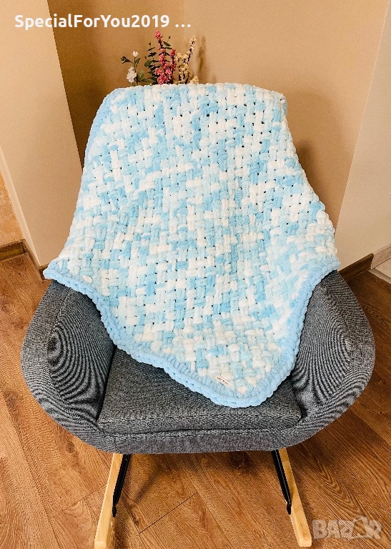 Нежност, топлина и уют - всичко това е вплетено в това меко одеялце, изработено на ръка от пухкавата прежда Alize Puffy. Всяка бримка е направена с внимание и усмивка, за да донесе спокойствие и комфорт на вашето мъниче.
