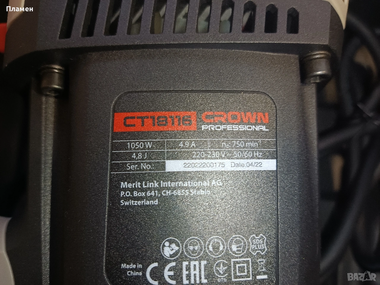 Нов CROWN 4.8j 1050w с комплект шило,секач,свредла и грес.Машината е Profi series.