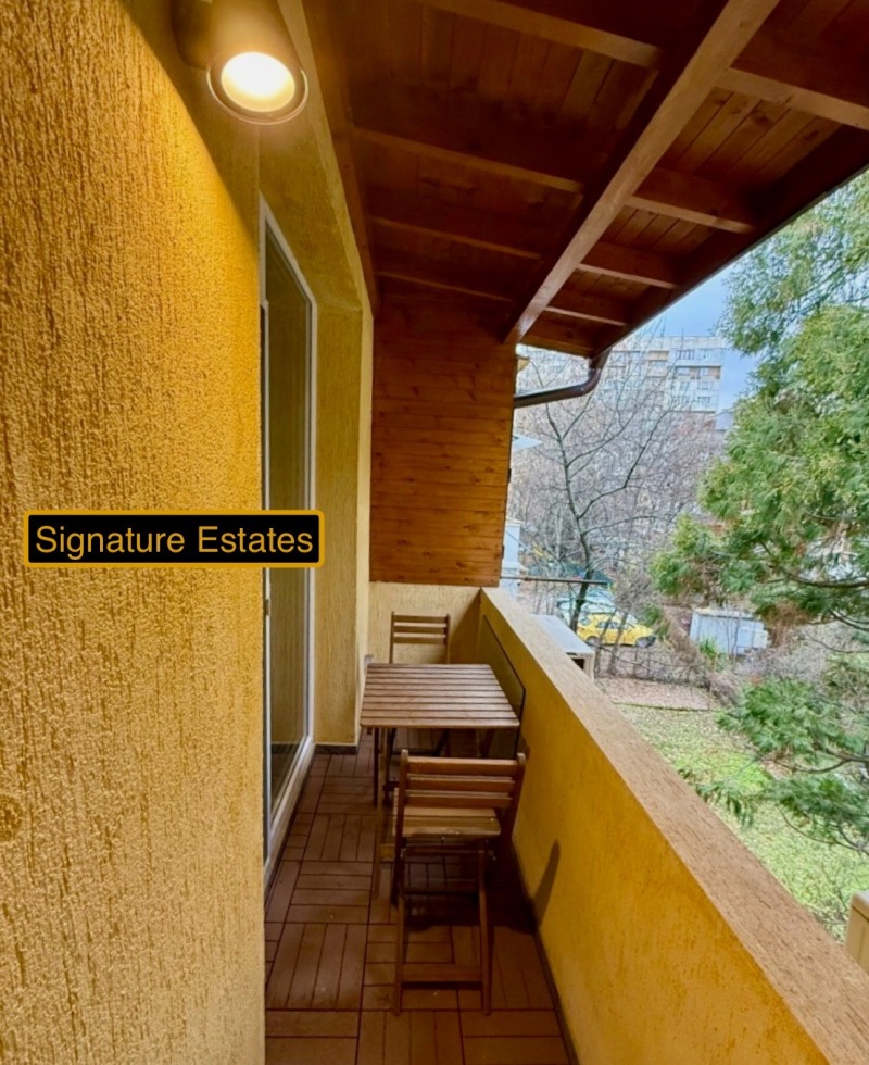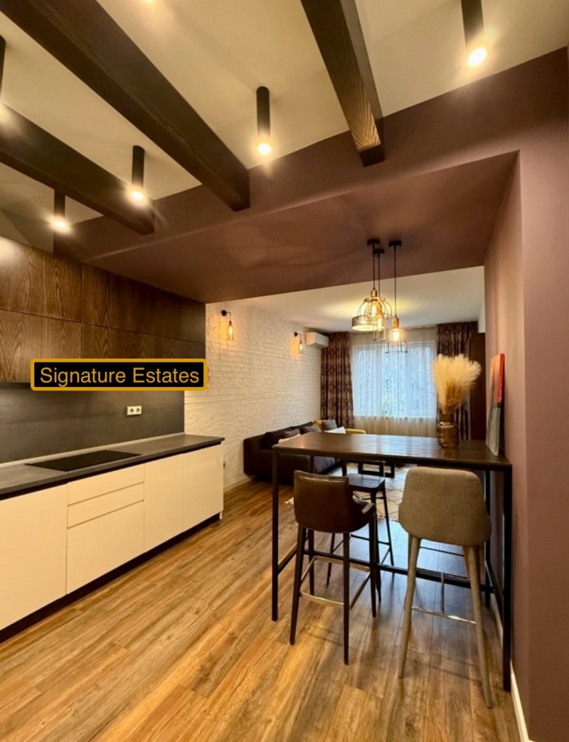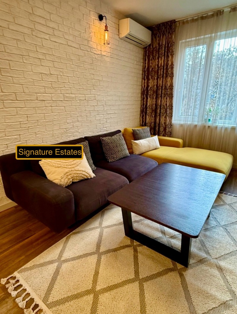[email protected]Signature Estates offers to your attention a modernly furnished, very warm two-room apartment after refreshing renovation. The apartment is located in a well-maintained entrance with controlled access in Dolen Lozenets, close to Park Center, National Palace of Culture and metro stations European Union and Vasil Levski.
