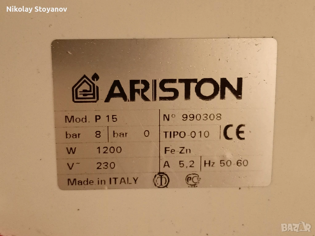 Продавам електрически бойлер Ariston, обем 15 литра, подходящ за монтаж над или под мивка.