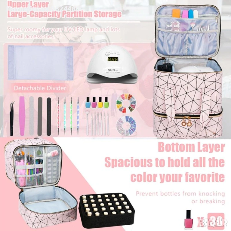 Пълно съдържание: В комплекта получавате 1 брой двуетажна чанта и 1 брой подвижна вложка от пяна, побираща точно 30 лака.