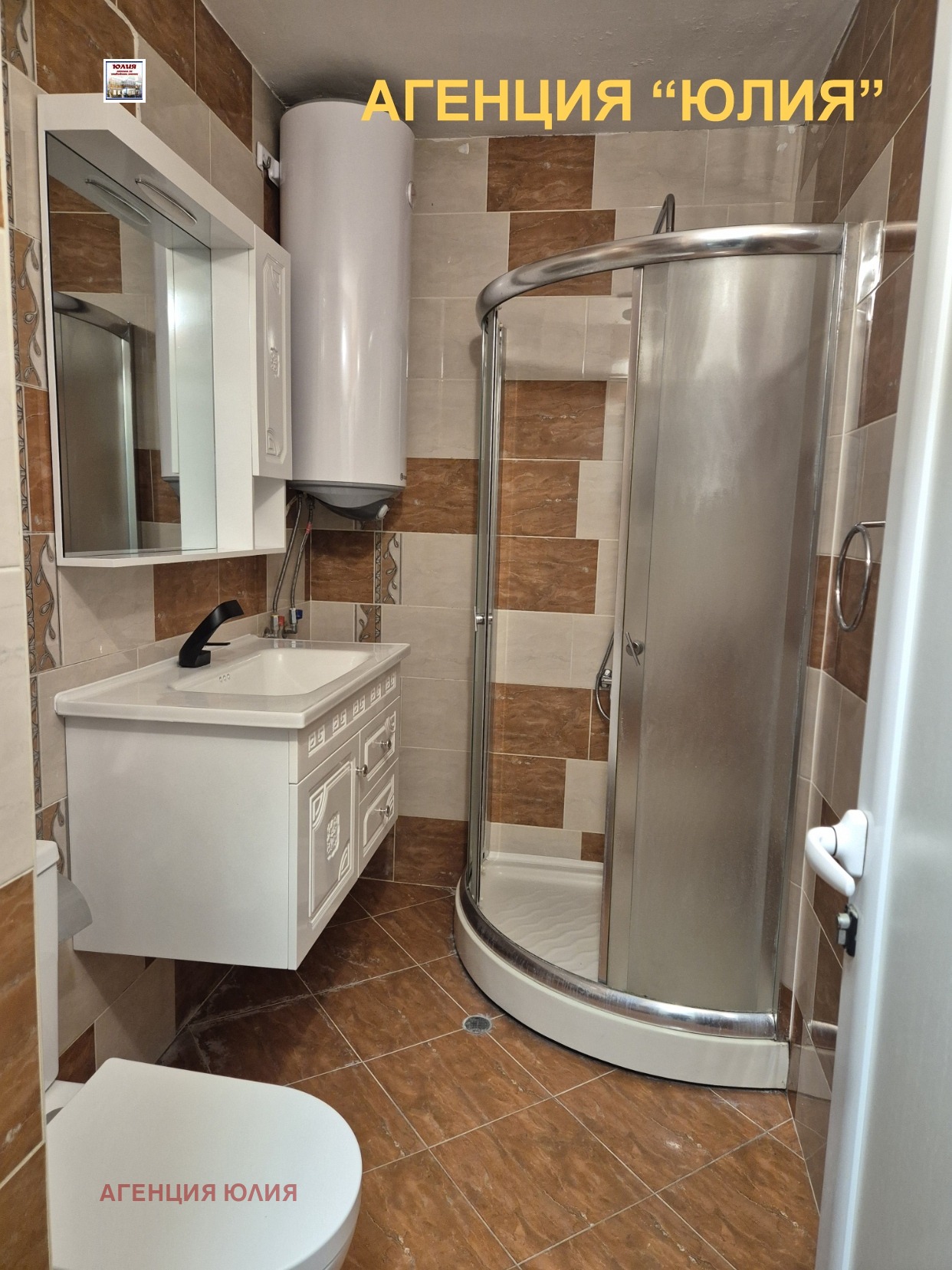 В подножието на Стария град, с прекрасна гледка към него, двустаен апартамент, състоящ се от просторен хол с трапезария, кухненски бокс и тераса, голяма спалня с тераса, баня с тоалетна и антре. Жилището е след ремонт, с ново обзавеждане, включително осъвременена баня с изцяло ново оборудване. Отоплението е решено с два климатика. Електроуредите са: готварска печка, хладилник с фризер, пералня, телевизор. Сградата е санирана, с контролиран достъп и асансьор. Управлява се от професионален домоуправител. Близо до спирки, Главната улица, различни учреждения, заведения и магазини. Отдава се дългосрочно. Не се допускат домашни любимци. За оглед и повече информация - 0895823333 Мария.