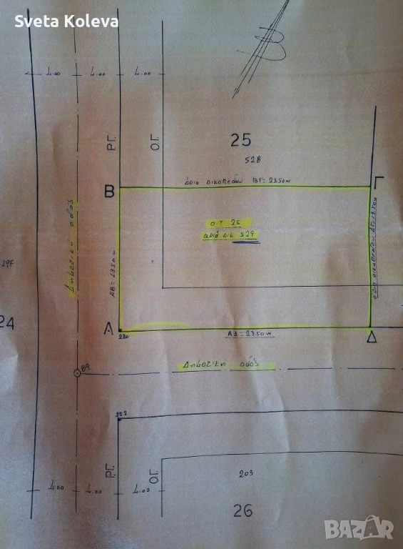 Дълбочина на парцела са достъп до път 23,50 метра.