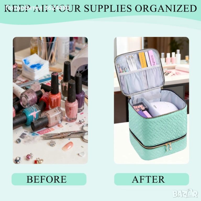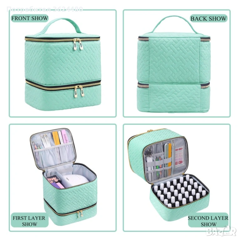 Тип: Двуслойна чанта тип куфар органайзер за маникюр.