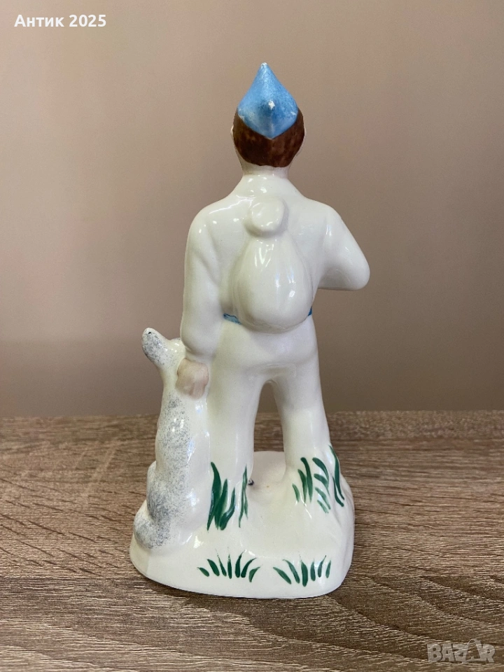 Винтидж порцеланова статуетка „Ловец с куче“, Коростенски порцеланов завод, СССР