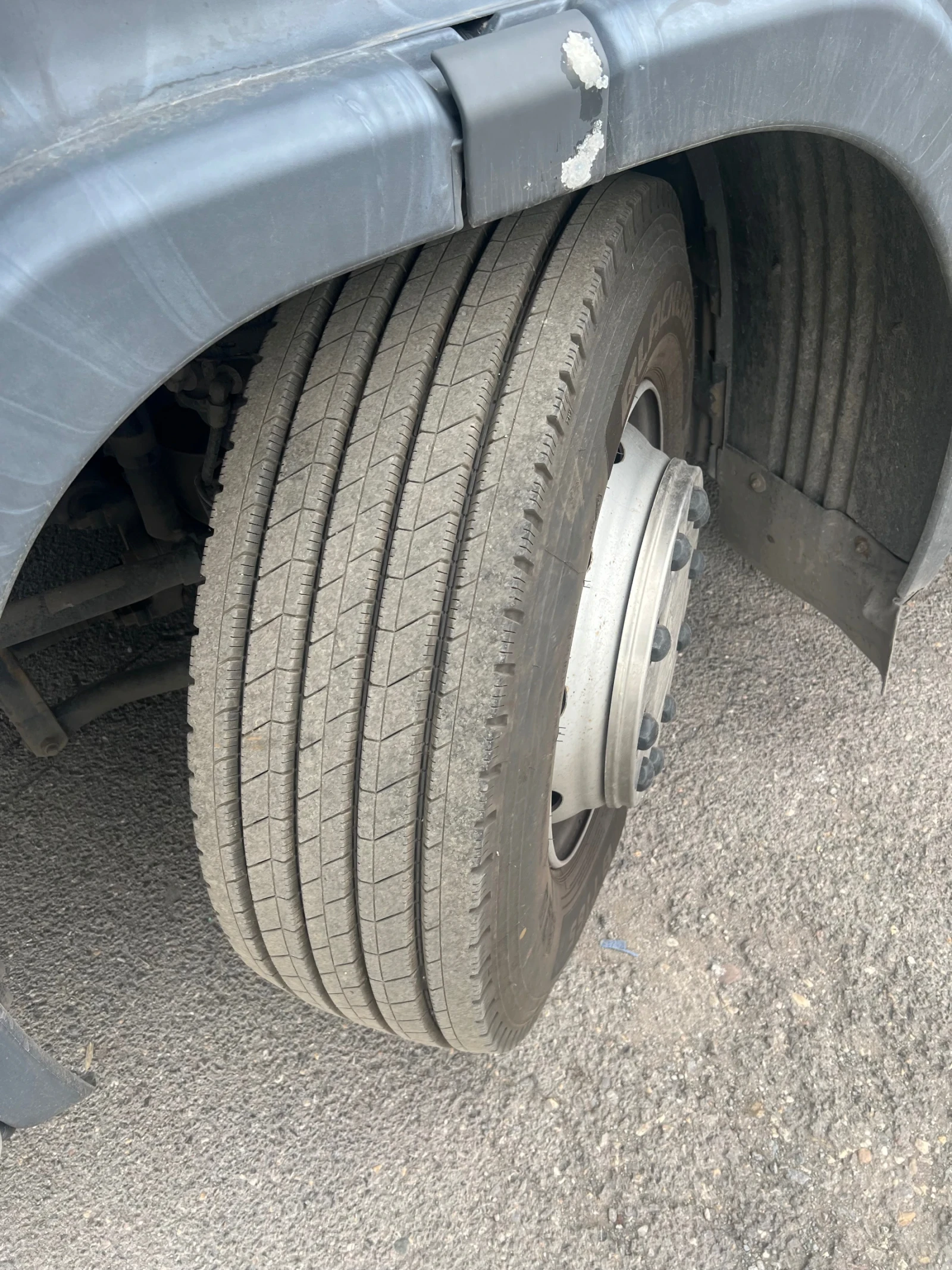 Камиона е напълно обслужен с чисто нови предни и задни гуми. Разполага с ретардер , печка , климатик и много други. Размери на каросерията 7. 20/2. 50/2. 80см падащ борд , тристранна щора. За повече информация тел. 0887593103