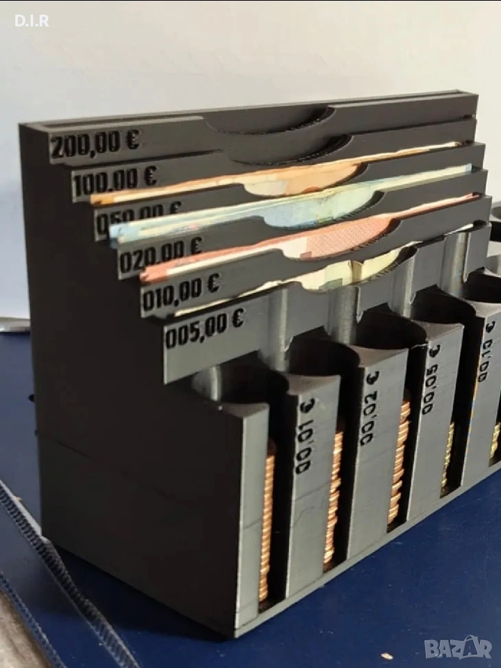 Касичка с умни отделения. Отделения за всички монети и банкноти до 200 ЕВРО.