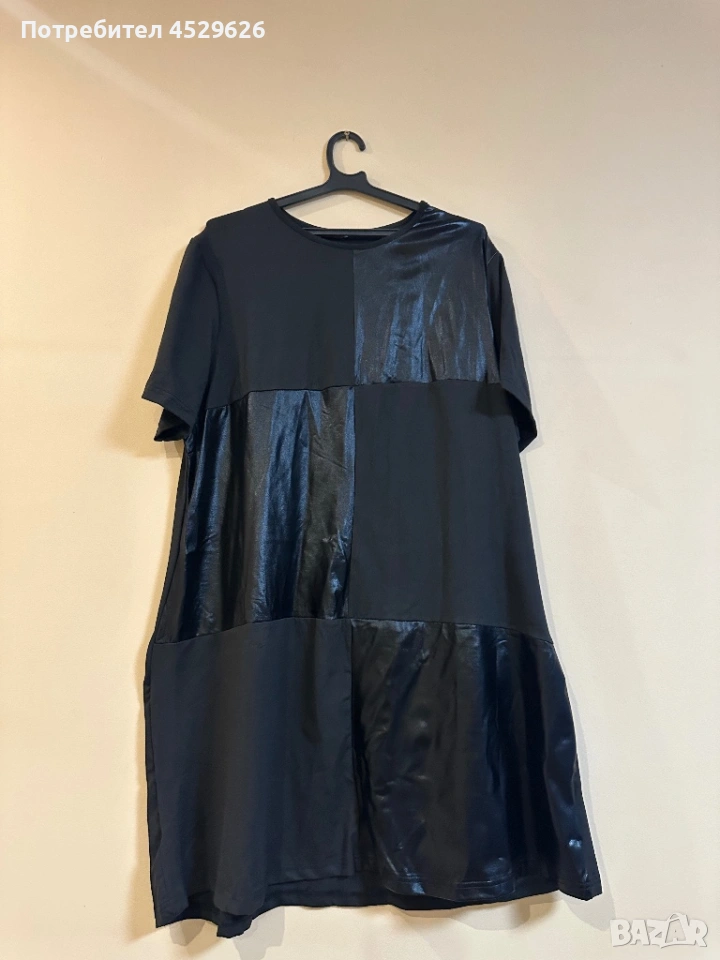 Черна рокля с кожен елемент → Обява 53236438