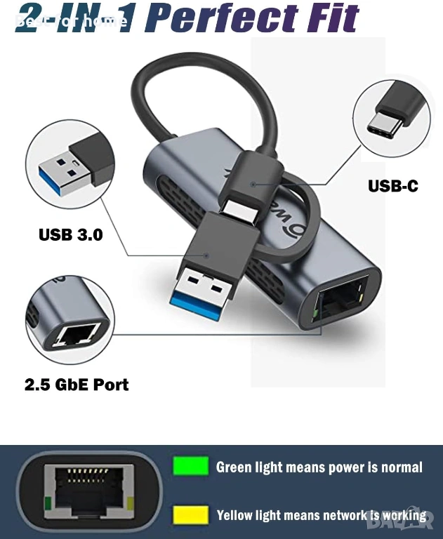 【2.5G SuperFast Ethernet производителност】 - 2.5 Gigabit Ethernet портът поддържа супер бърза мрежова скорост до 2500Mbps (2.5Gbps), двойно по-висока производителност от традиционния гигабитов Ethernet адаптер и е съвместим с 10/100/1000Mbps. Насладете се на по-бърз трансфер на файлове, по-плавни видеоконферентни връзки и безпроблемно стрийминг.