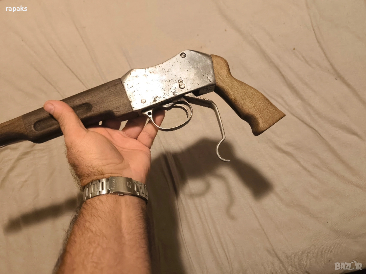 пушка Пибоди Мартина, карабина Хенри Мартина, лопара, Румънска Мартина, Мартина 2, или само Мартинка. Шомпул не е нейн, иначе напълно автентична. Прекрасни железна и много добра дървения. Поставен постоянен буфер и пищялка отпред за по силен звук. Всички механизми налични и работят. Продавам и в други сайтове и при интерес и въпроси първо питайте дали все още е налична и тогава наддавайте. Имам още над 100 интересни сходни аукциона, разгледайте ги.