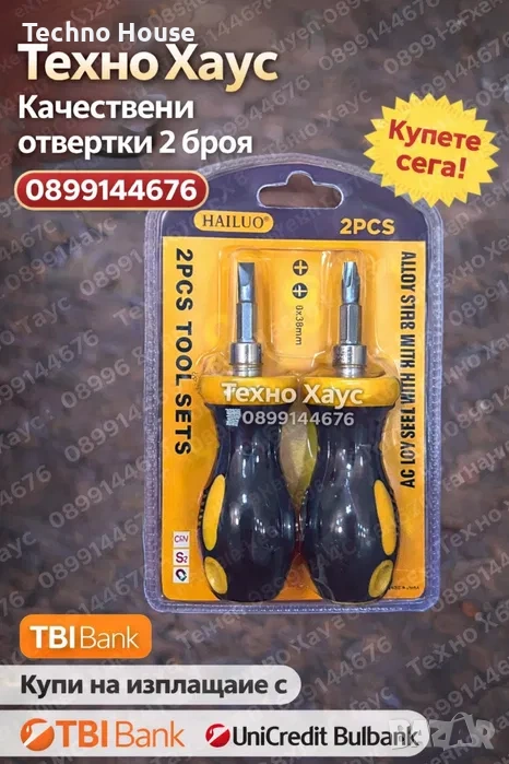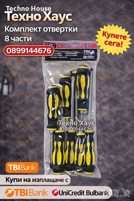 Различни видове Комплект отвертки - ролетка - клещи -ударни -