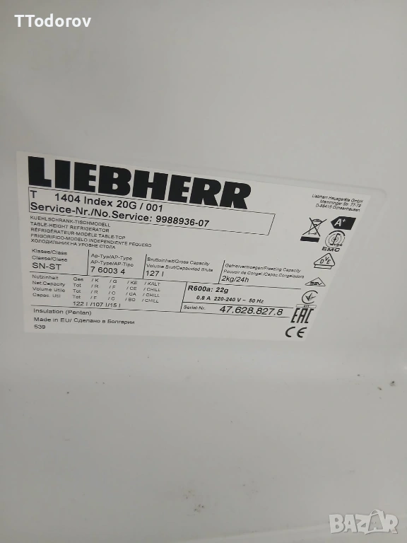 Liebherr T1404 е компактен хладилник тип „под плот“, който е