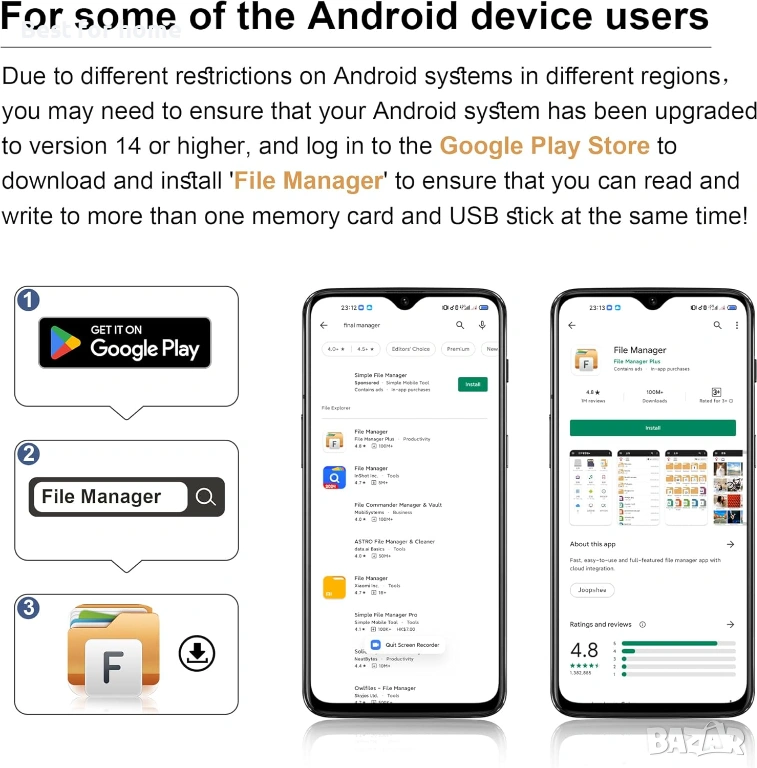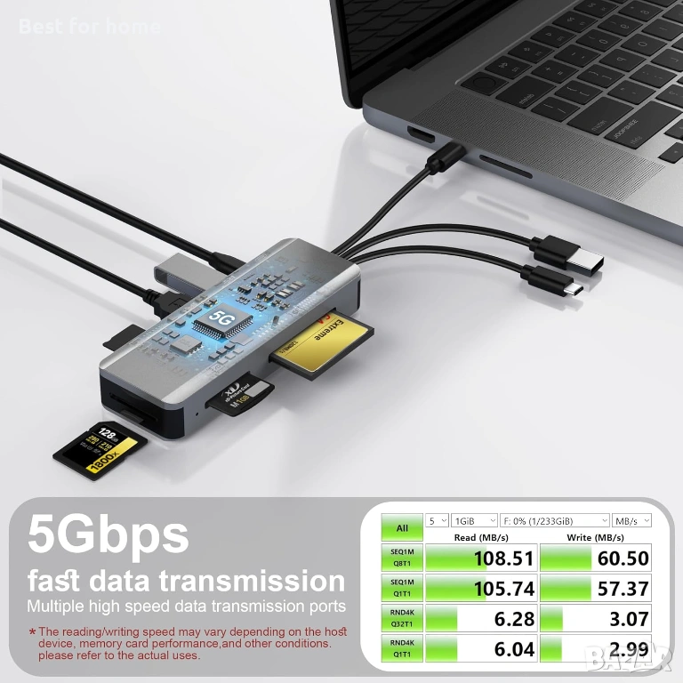 Високоскоростен трансфер на данни: Вграден USB 3.0 чип, скоростта на трансфер може да достигне 312MB/S с нашия USB 3.0 четец за SD карти. Можете да прехвърляте вашите изображения и видеоклипове от картата си към телефон/таблет/Android/лаптоп, спестявайки много време и подобрявайки ефективността на работата си.
