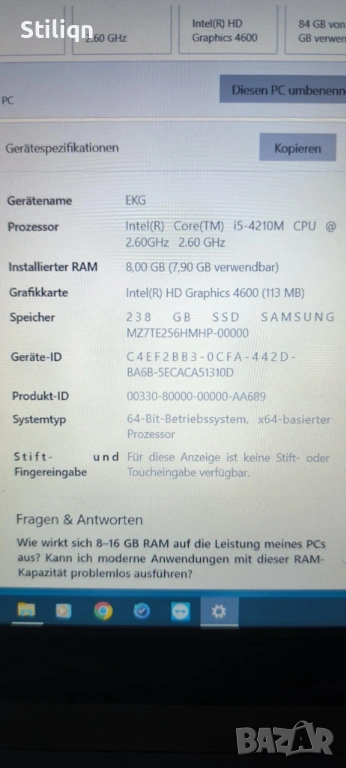 Състояние: Реновирано = почистено и тествано, използвано, но визически и технически като ново устройство, практически без следи от употреба (вижте снимките), SSD и батерия = издържа до 5 часа.