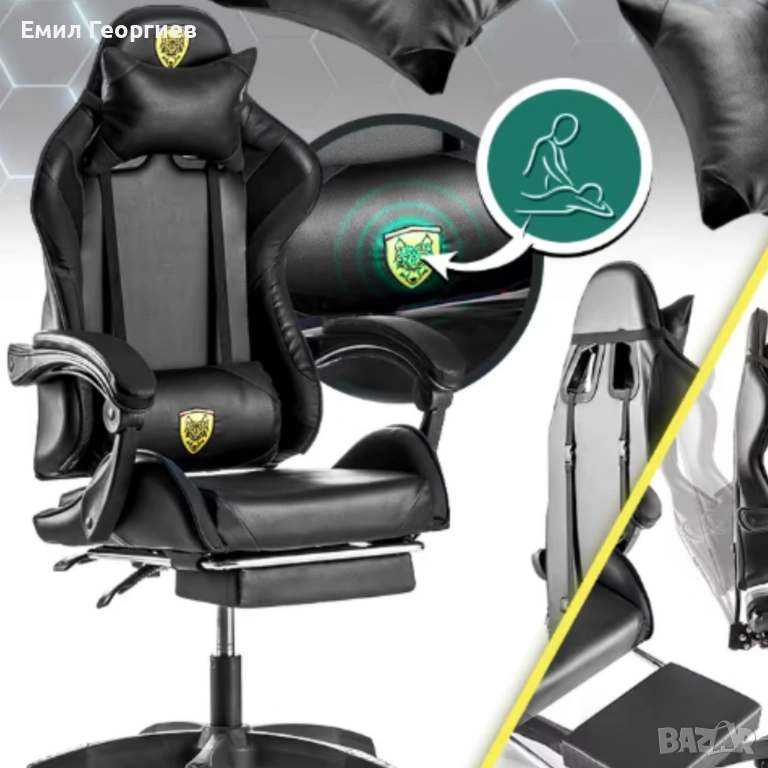 Черен геймърски стол с прибираща се поставка за крака – максимален комфорт при дълги часове игра