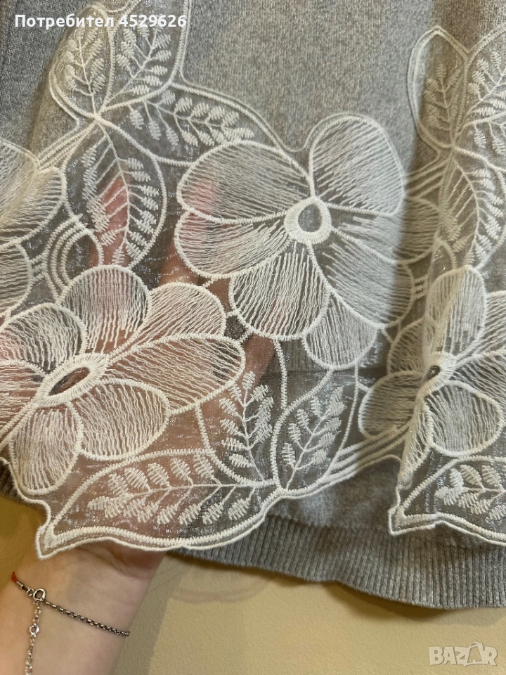 Сива блуза с дантела , снимка 1 - Блузи с дълъг ръкав и пуловери - 53237206 Сива блуза с дантела , снимка 2 - Блузи с дълъг ръкав и пуловери - 53237206 Сива блуза с дантела , снимка 3 - Блузи с дълъг ръкав и пуловери - 53237206 Сива блуза с дантела , снимка 4 - Блузи с дълъг ръкав и пуловери - 53237206 1/4