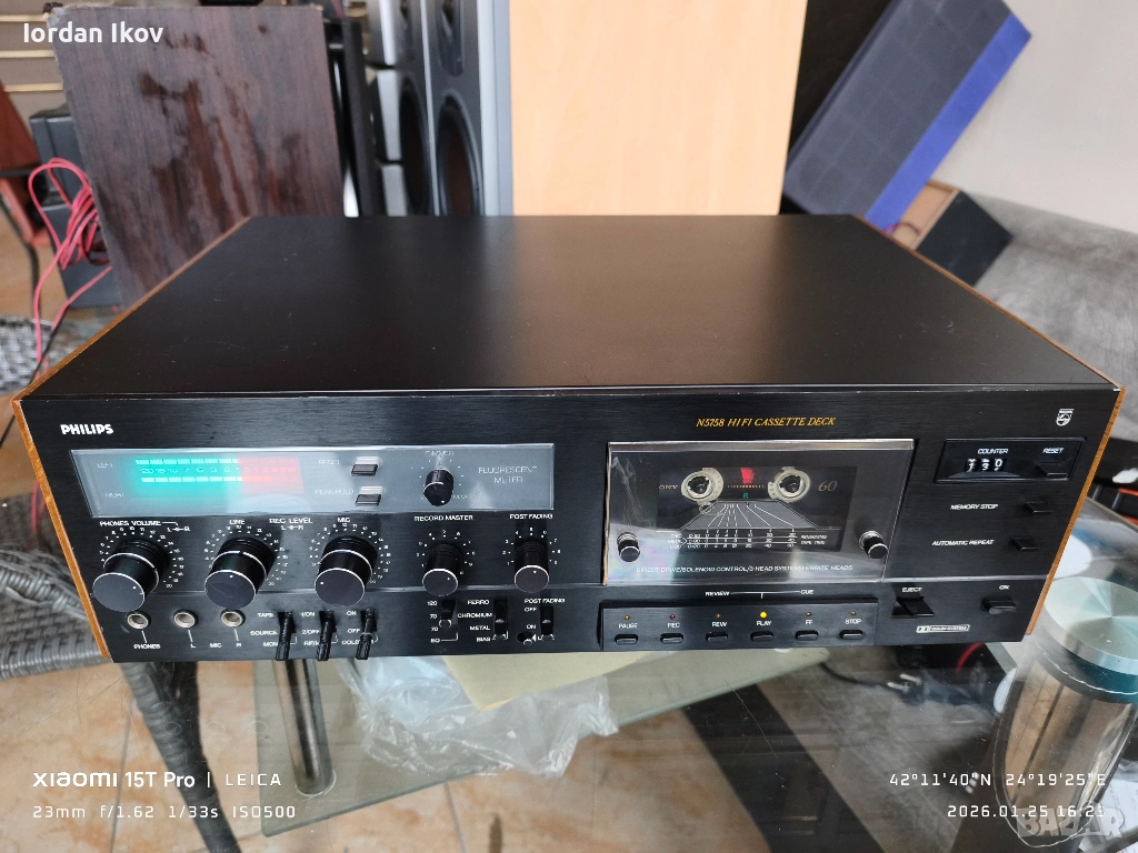 Обявявам за продажба рядък ,висококачествен колекционерски триглав касетен дек Philips N-5758.Личен компонент .Тази уникална машина слага в малкия си джоб много от конкурентите си .Директ драйв с феритни глави. Уникален запис! Модела е произвеждан от 1980 до 1982 година на цена от 1950 DM.Топ модела на марката .Много тежка и качествена машина механиката е метална за разлика от много филипси..Технически изряден с доста добър външен вид .Има 2 обяви за този модел в България едната е на цена от 1000 евро другата е на цена 1250 евро .Моята цена за този изключителен модел е 450 евро ...