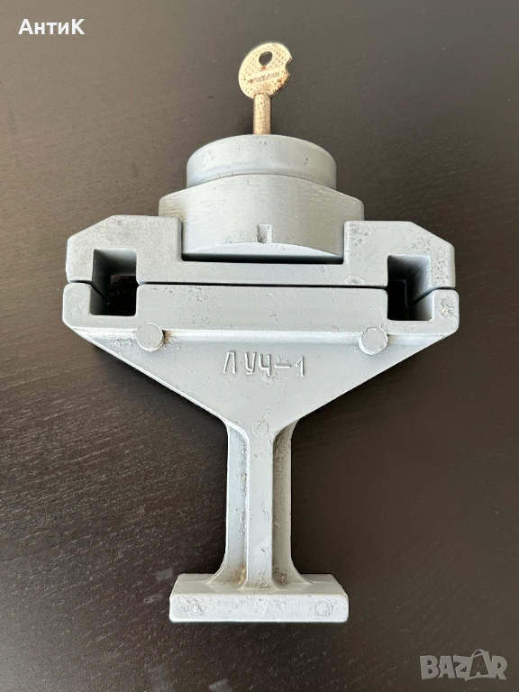 От времената, когато Ладите и Жигулите бяха на прицел... Заключващо устройство, използвано през Соца за обездвижване педалите на автомобили ВАЗ и Жигули. Отлично състояние, наличен 1 ключ. Производство на Завод "Сельмаш" - Киров