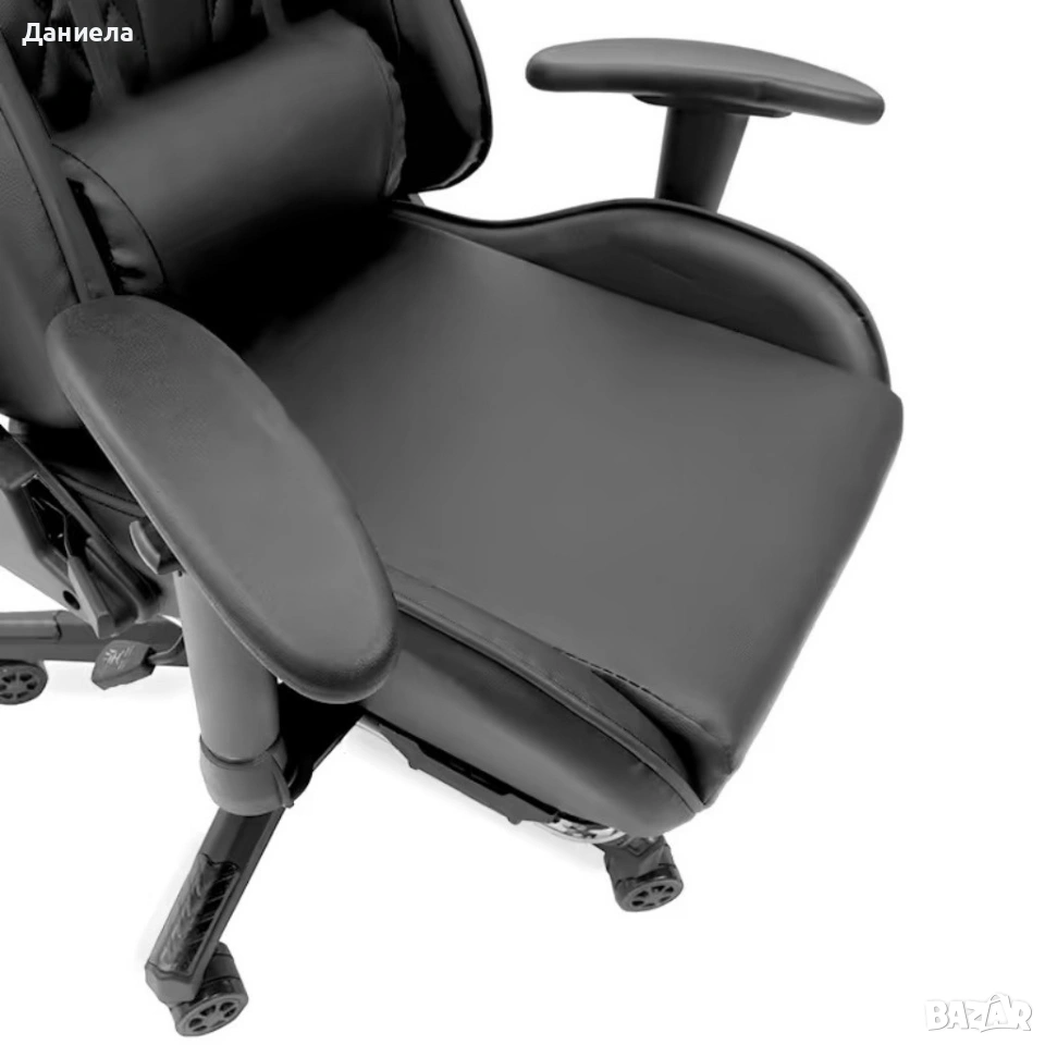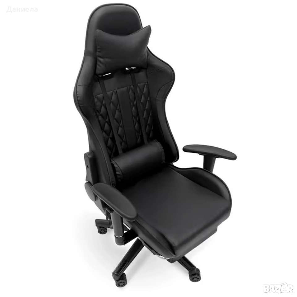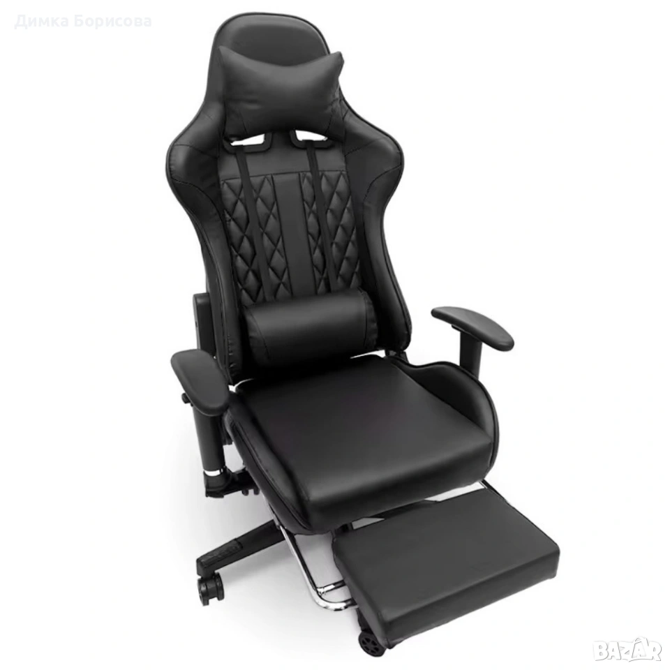 Геймърски стол с прибираща се подложка за крака и функция за масаж - черен