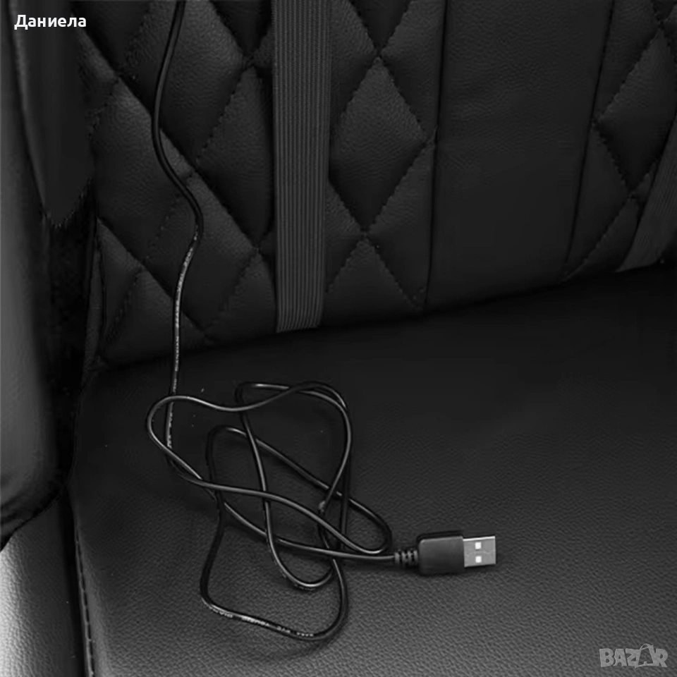 Геймърски стол с подложка за крака; Механизъм: Регулиране на височината и наклона; Облегалка: Регулируема, тип „кофа“; Подложка за крака: Прибираща се; Възглавници: 2 броя – за врат и кръст; Допълнителна функция: Масаж в лумбалната възглавница (USB захранване); Основа: 5-лъчева с колелца; Минимална височина на седалката: 66 см; Максимална височина на седалката: 76 см; Ширина на седалката: 53 см; Дълбочина на седалката: 47 см.
