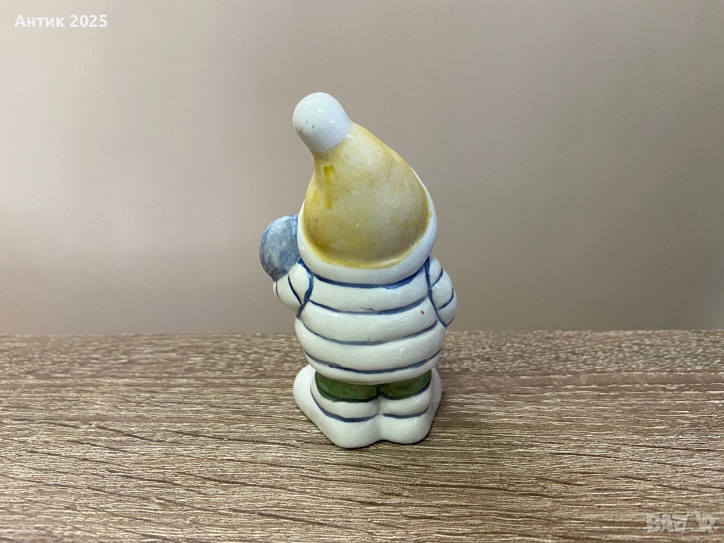 Порцеланова статуетка, изобразяваща зимно момче с топло яке и шапка с помпон. В ръцете си държи малка лопатка, сякаш е готово да играе или да почиства снега. Фигурката е изработена в мека, наивна стилистика, с приятна ръчна роспис и добре подчертани детайли.