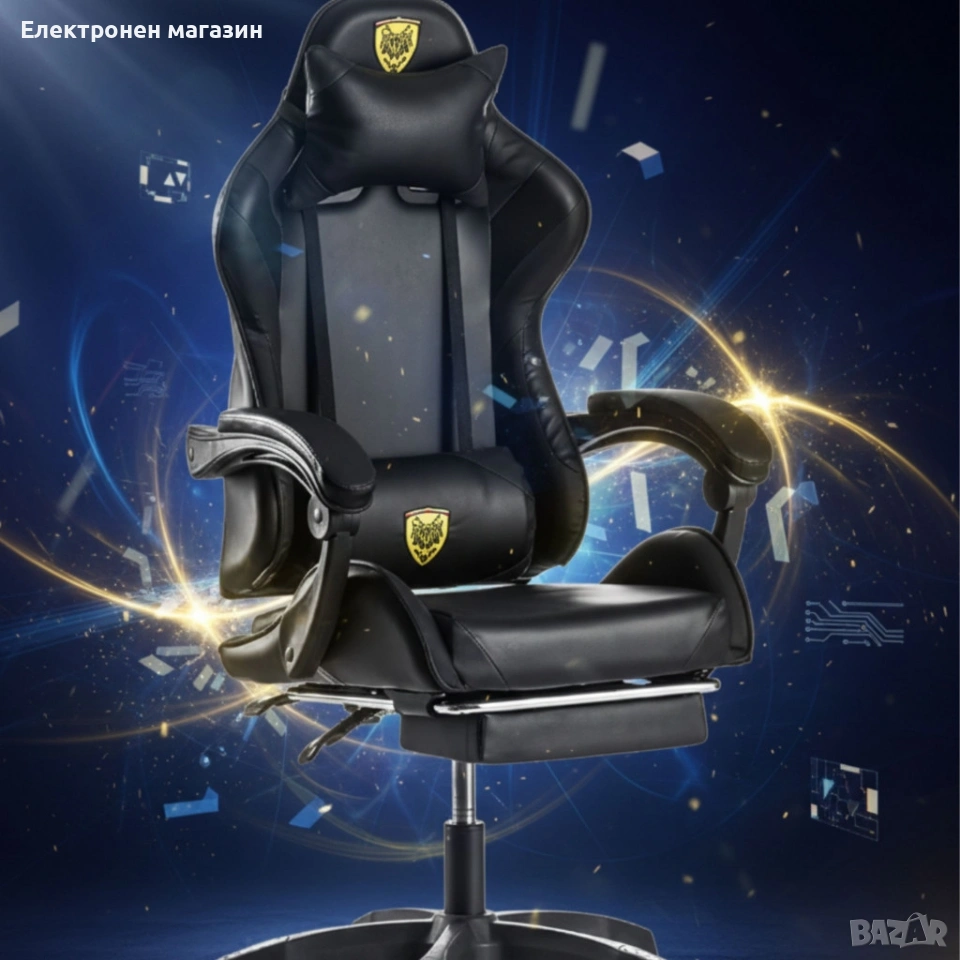 Черен геймърски стол с прибираща се поставка за крака – максимален комфорт при дълги часове игра