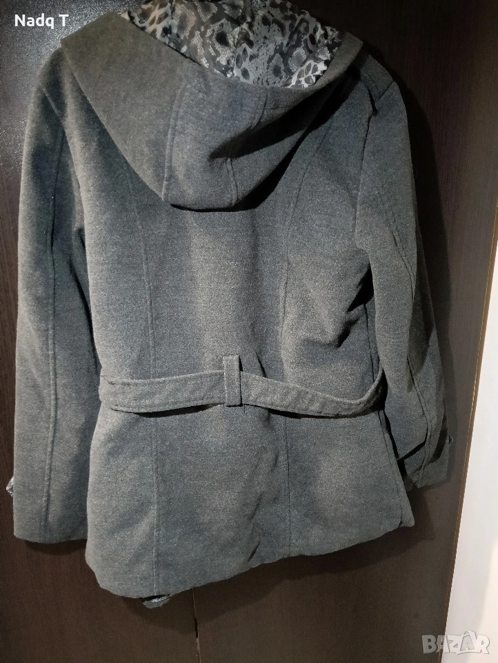 Палто, сиво с качулка. Размер XL, но благодарение на колана в кръста може да стане и за по малък размер.