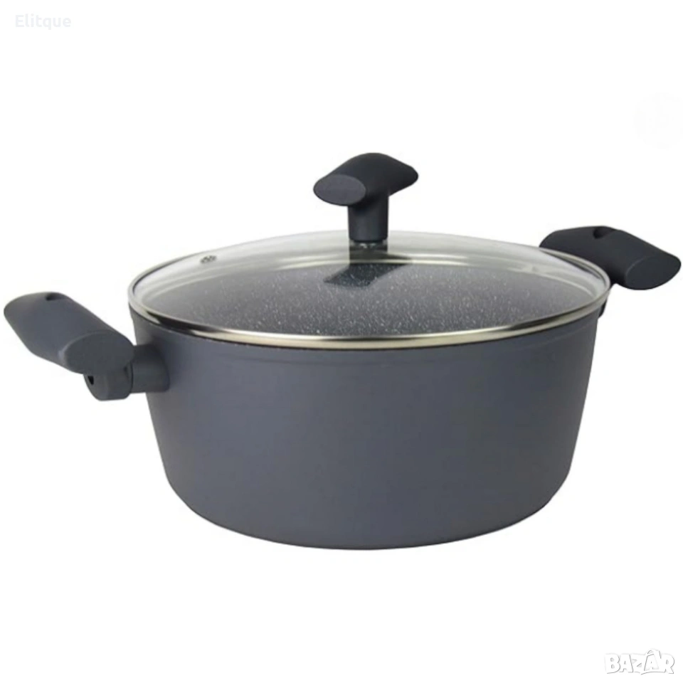 Материал: Кован алуминий; Размери: Касерола: 16 см; Малка тенджера: 20 см; Голяма тенджера: 24 см; Тиган: 24 см; Капак: Стъклен с отвор за пара; Дръжки: Със заоблени ръбове; Покритие: Незалепващо, за лесно готвене с минимално количество мазнина; Поддръжка: Лесно почистване, подходящи за съдомиялна машина; Цвят: Сив; Допълнителни функции: Турбо индукция, енергоспестяващо готвене.