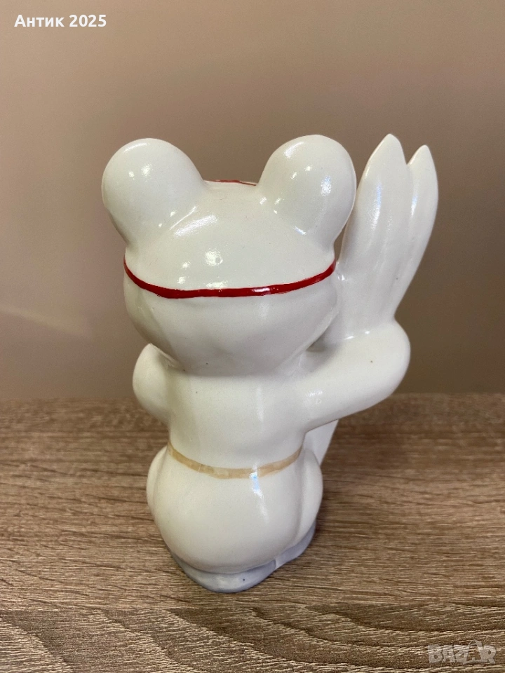 порцеланова статуетка от Коростенския порцеланов завод, изобразяваща Олимпийското мече в образа на скиор — спортен персонаж, посветен на Олимпийските игри през 1980 г. Мечето е скиор с очила и медал на гърдите, символизиращ зимните спортове и олимпийските постижения.