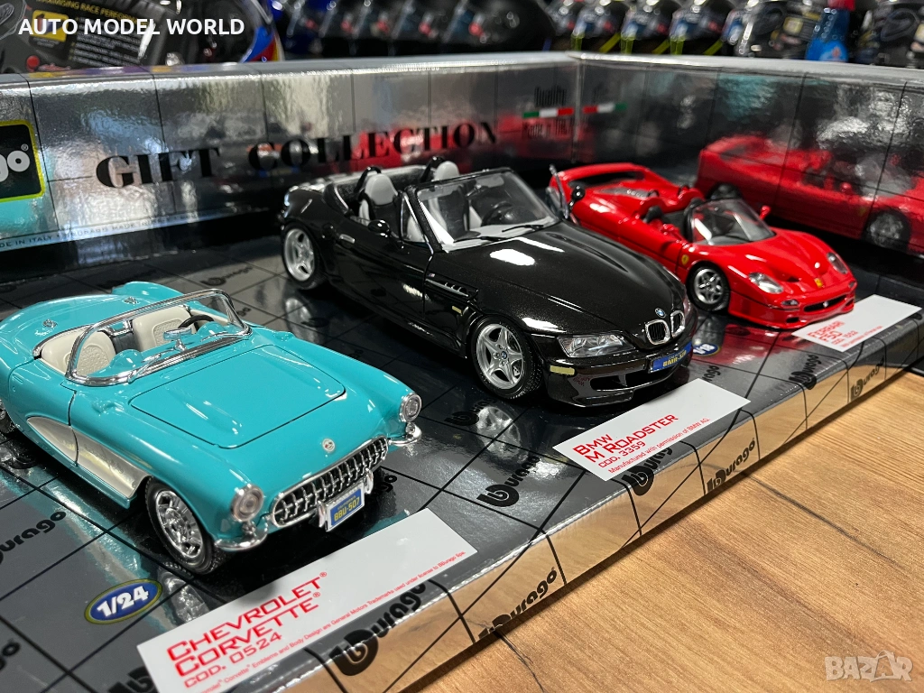 Колекционерски комплект модели BBURAGO GOLD COLECTON 1:18 и 1:24 BMW,FERRARI и Chevrolet ,цена 119лв.