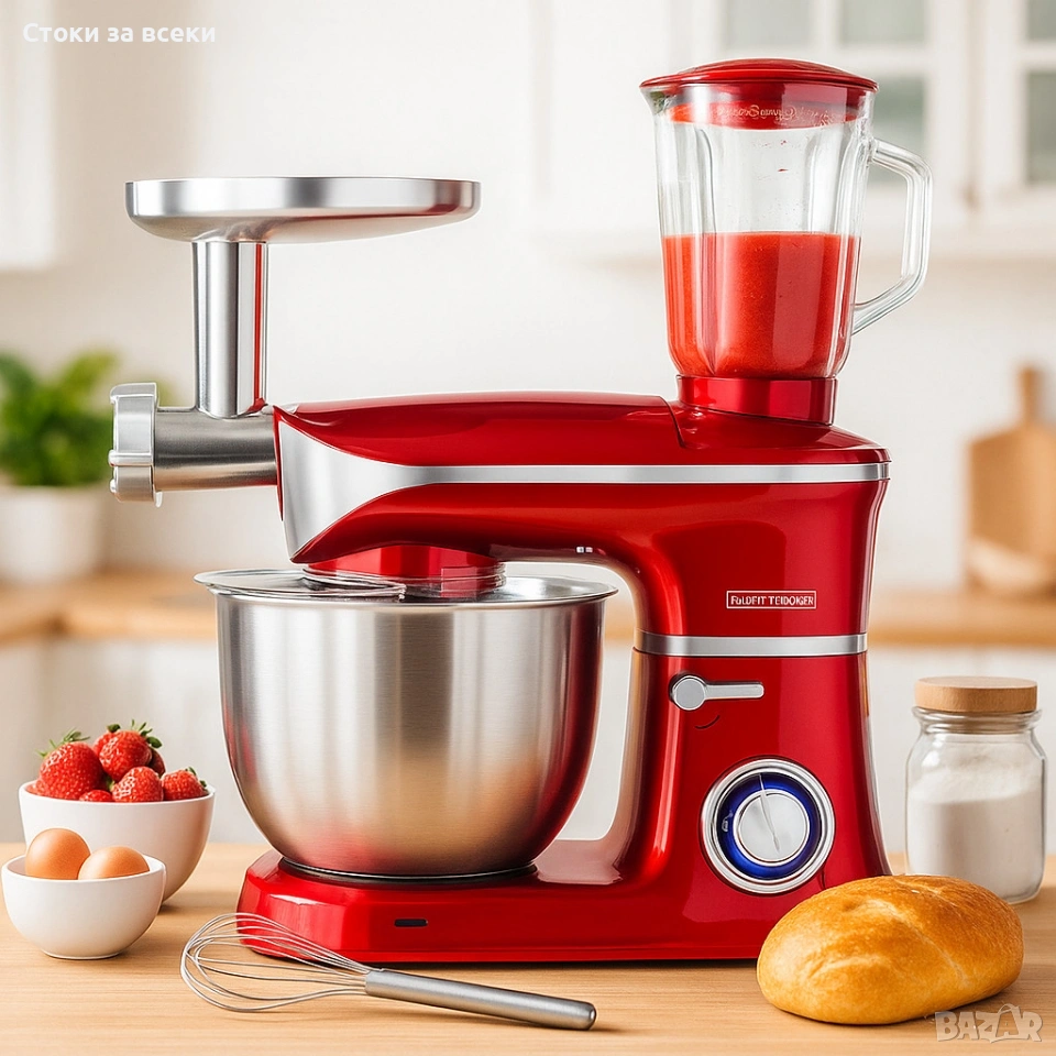 Приставки: бъркалка за яйца, кука за тесто, миксираща бъркалка, шпатула;