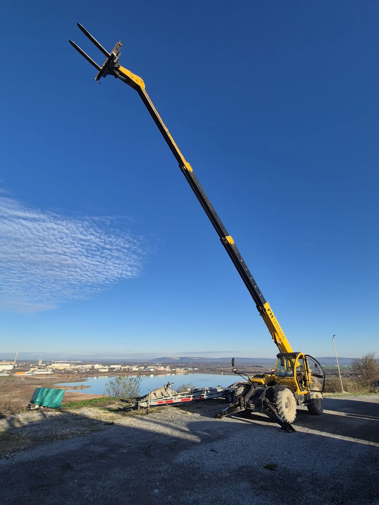 Машината е във работно състояние без на належащи ремонти . Повдига 4 тона , височина на повдигане 17 метра. Разполага със строителна кофа , вилица и кош за вишка. Възможен тест по всяко време . Двигател Ивеко четири цилиндъра , управление със джойстик , две скорости на предвижване , нови гуми , КЛИМАТИК, регистрация във КТИ . Като цяло това е аналогов товарач без електроника по него, това го прави и много лесен за подръжка. Във цената има ДДС За частни лица и фирми ДОГОВАРЯНЕ ! За повече информация по телефона.