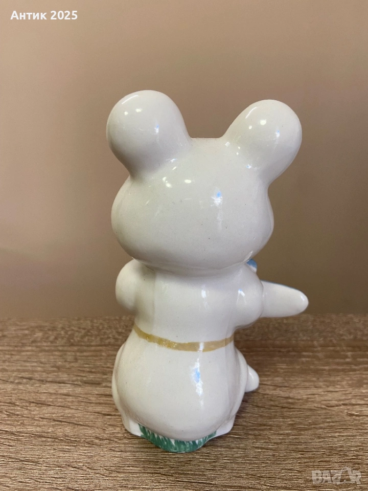 порцеланова статуетка от Коростенския порцеланов завод, изобразяваща Олимпийското мече — символ на Олимпийските игри през 1980 г. Мечето държи самолет и носи медал с цифрата „1“, символ на победа, развитие и стремеж към високи постижения.