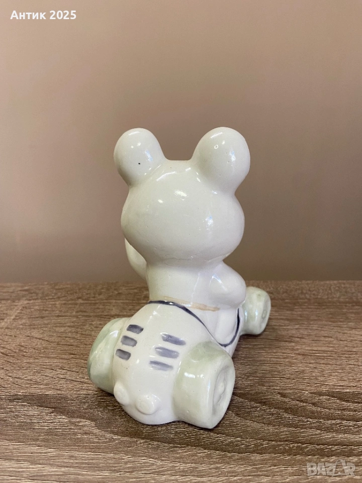 порцеланова статуетка от Коростенския порцеланов завод, изобразяваща Олимпийското мече — официалния символ на Олимпийските игри през 1980 г. Мечето е седнало в състезателен автомобил с номер „1“ и олимпийските кръгове, с вдигната лапа в поздрав.